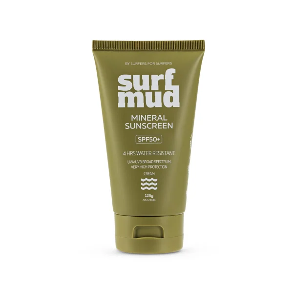 The SURFMUD Mineral Sunscreen SPF50+ gives you great sun protection with a lighter feel. With a new formula this version of the SurfMud formula has extra SPF50+ sun protection along with a lighter feel. So it’s more easily applied while still being long lasting.